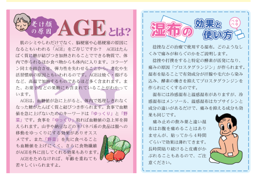 肌のシミやしわだけでなく、脳梗塞や心筋梗塞の原因になるともいわれる「AGE(エージーイー)」をご存じですか? AGEはたんぱく質に糖が結びつき加熱されることでできる物質で、体内で作られるほか食べ物からも体内に入ります。コラーゲン同士を結合させ、弾力性を失わせることから、老化や生活習慣病の原因ともいわれるのです。AGEは焼く・揚げるなど、高温で加熱するものであるほど多く含まれます。また、お菓子などの果糖にも含まれていることがわかっています。